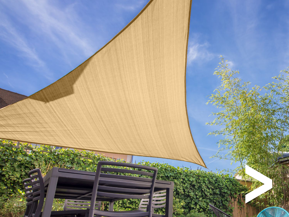 - Schaduwdoeken: Leverbaar in 21 maten, 4 vormen en 4 kleuren.